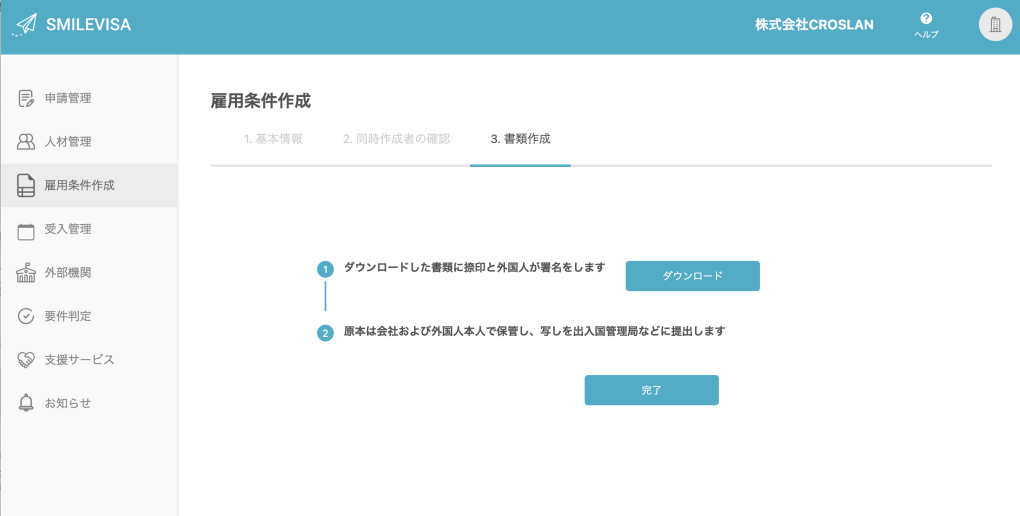 最後に書類作成でダウンロード・出力していただき、完了します。